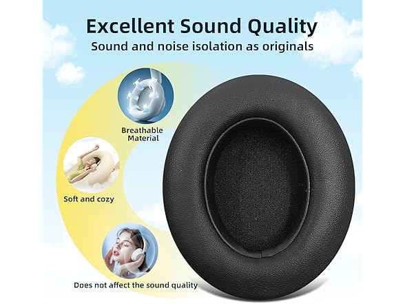 Cooling Gel Replacement Ear Pads Cushions for Beats Studio 2 & Studio 3 Wired & Wireless Headphones, Earpads with High-Density Noise Isolation Foam, Added Thickness - (Black)