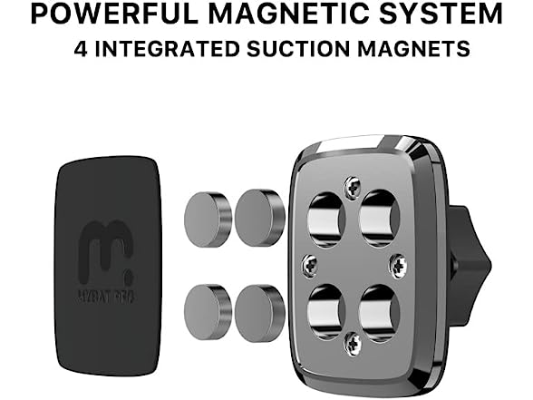 - Lock Your Phone Stable: MYBAT PRO Magnetic Car Phone Holder Mounts with 4 Built-in Strong Neodymium Iron Boron Magnets That Hold Up to 7.7lb / 3.5kg (15 x iPhone 14). Thanks to the Strong Suction Power, Your Mobile Phone or Tablet Will Be Kept in Place Even on Bumpy Roads. Please Note: 1. The Phone Holder for Car Fits All iPhone, Samsung, and Other Cellphones with Thick Cases. 2. It is Recommended to Install the Metal Plate on the Back of the Phone or Phone Case.
