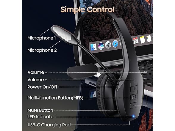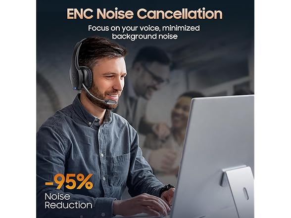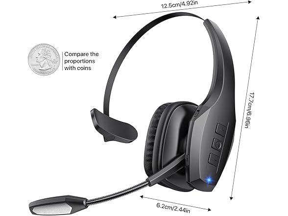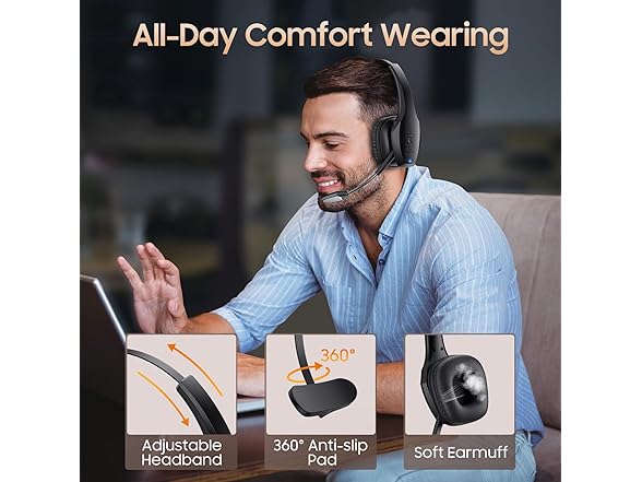 - All-Day Comfort for Prolonged Wear: Crafted with soft, breathable earmuffs and an ultra-soft adjustable headband, our bluetooth headset features a 270° rotatable design for both earmuffs and microphone, ensuring prolonged comfort and easy to switch and left/right ear available. Ideal for extended use, this wireless headset is perfect for work, promising day-long comfort.