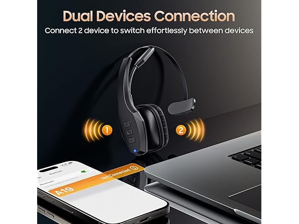 - Seamless Connection to 2 Devices: Effortlessly connect our bluetooth headset to two Bluetooth devices simultaneously. Never miss important calls or meetings while enjoying your favorite music. Compatible with various Bluetooth-enabled devices, this headset ensures versatility.