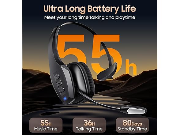 - Extended 55Hrs Battery Life: With a swift 2-3 hours charging time, our Trucker Bluetooth headset offers an extended battery life of up to 36 hours of talk time, 55 hours music time and 80 days of standby time. Drive, commute, meeting or work from home without the hassle of frequent recharging, empowering you to make calls or attend meetings at your convenience.