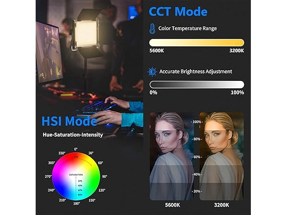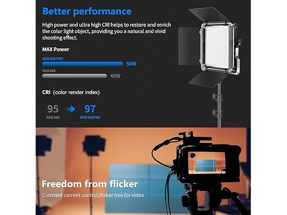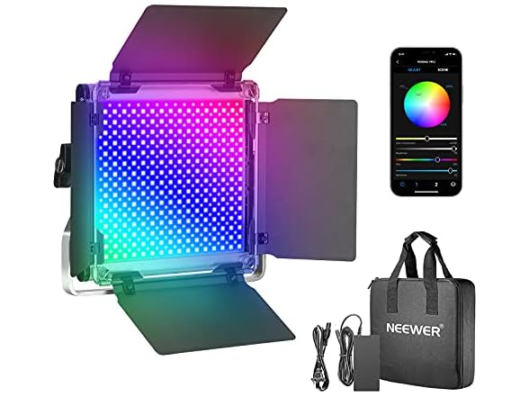 - 【Upgraded 660PRO RGB Photography Lighting Kit】 With Upgraded 50W high power and high CRI 97+, NEEWER 660PRO helps to restore and enrich the colors of objects, providing natural and vivid lighting for studio photoshoots, podcast videography, filming and creative photography. Consist with 660pcs SMD LED beads (170pcscool/170pcs warm/320pcs RGB beads), Bi color can adjust the color temperature from 3200K to 5600K, RGB can adjust the tone output from 0°to 360° and color saturation from 0% to 100%