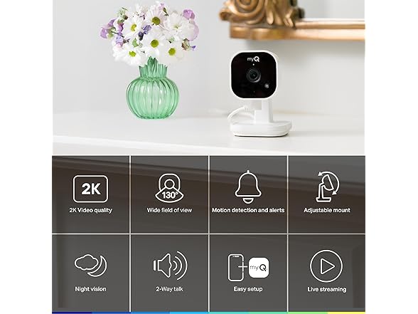 (NEW) Chamberlain myQ Indoor Plug-in Security 2K Smart Wi-Fi Camera (Gen 2) - with Night Vision, Baby and Pet Monitor, Motion Detection and Alerts, 2-Way Audio & App Control