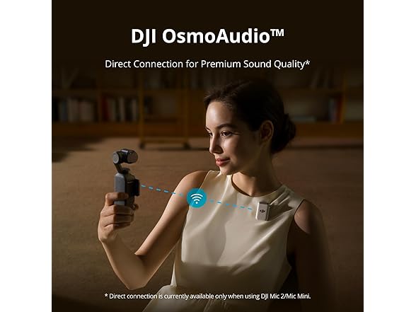 - DJI OsmoAudio - Pocket 3 can connect directly to two DJI Mic 2/Mic Mini transmitters, ensuring high-quality audio for vlogs, interviews, and livestreams while simplifying your gear and workflow.