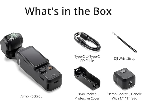Overview: Whether traveling, enjoying an afternoon in the park with family, or vlogging your daily life, capture stunningly smooth footage on the move with Osmo Pocket 3. Please update the firmware to latest version for a better user experience. * Due to platform compatibility issue, the DJI Mimo app has been removed from Google Play. You cannot search for DJI Mimo in Google Play. To ensure a better product usage experience, please log in to the DJI official website to download the latest version of DJI Mimo. *Battery charger sold separately. It is recommended to purchase the DJI 30W USB-C Charger. Osmo Pocket 3 comes in two purchasing options: -Osmo Pocket 3 is the standard option; it includes the pocket gimbal, protective cover, wrist strap, handle with 1/4" thread, and more to help you get started quickly. -Osmo Pocket 3 Creator Combo allows users to level up their audio and filming capabilities. It includes all items in the Osmo Pocket 3 starting set and additional items such as the DJI Mic 2 Transmitter, carrying bag, and battery handle. Notes 1. Osmo Pocket 3 has a built-in 1300mAh battery. It can be charged to 80% in 16 minutes and 100% in 32 minutes. The data was tested in a laboratory environment with the DJI 65W PD charger (sold separately). 2. Tested in a 25° C (77° F) laboratory environment with Wi-Fi off and screen off, and should be used for reference only. 3. 4K/120fps video recording is only supported in Slow Motion mode. Tested under 25° C (77° F) laboratory conditions, the max recording time of a single continuous video is approximately 22 minutes (approximately 18 minutes in Europe). 4. Tested in a controlled environment. Actual results may vary depending on the environment, usage, and firmware version. For details, refer to the corresponding product page on the official DJI website. FAQ Does Osmo Pocket 3 require a microSD card? Yes, the footage is saved to the microSD card inserted into the device. Please check the "Product Guides and Documents" for the full version of Notes and FAQ.