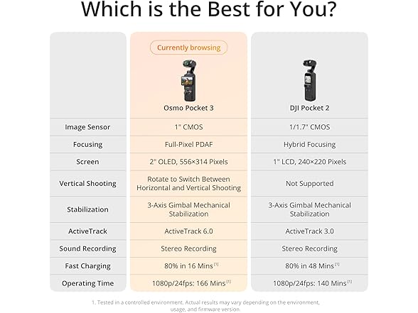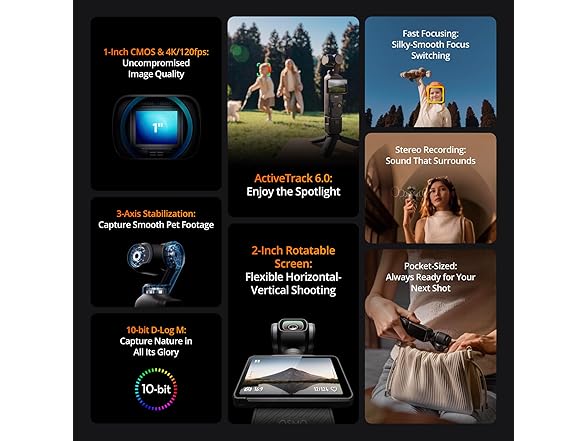 - Create Captivating Vlogs With ActiveTrack 6.0 - Stay effortlessly in focus as you record on the go. Set Osmo Pocket 3 up on a tripod and jump, dance, or spin, but remain center-frame.