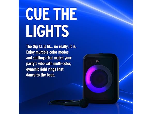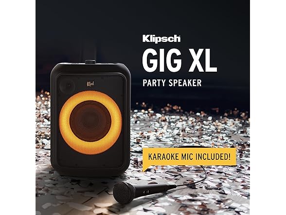 (NEW) Klipsch Gig XL Portable Wireless Boombox Speaker - Multiple Color Modes - Bass Boost - 6.5" Woofer & 2" Tweeter - 8-Hour Playtime - Splash Resistant - Karaoke Mic Included