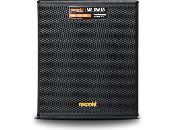 (NEW) Moonki Sound MS-SW18 18-inch Subwoofer Portable Pro Audio DJ Speaker 4 Ohm 1200 Wrms LED Indicator XLR/RCA Inputs