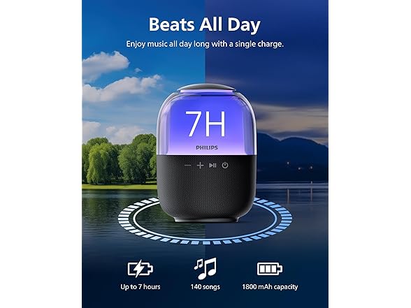 Optimized, Sales-Oriented Amazon Product Description Feel the Beat Anywhere with Powerful, Portable Sound Take your music wherever you go with this Portable Bluetooth Speaker. Featuring a 5W RMS full-range driver and passive radiator, it delivers rich, punchy bass and clear highs—perfect for home, parties, or outdoor adventures. Watch the radiator move to the rhythm and bring your music to life. Vibrant LED Lights for Every Mood Transform any space with multiple LED lighting modes. Choose from vibrant multicolor lights, smooth fading effects, or a soft white night light to create a relaxing atmosphere. Whether you're hosting a party, chilling at home, or camping outdoors, the lights sync beautifully with your music. True Wireless Stereo (TWS) for Immersive Sound Pair two identical speakers easily to enjoy stereo sound with synchronized LED effects. Expand your audio experience for living rooms, bedrooms, or outdoor gatherings. Long-Lasting Playtime & Flexible Listening Options Enjoy up to 7 hours of continuous playback on a single charge with the built-in 1800mAh battery. Stream music via Bluetooth 5.3 or play directly from a TF card, offering versatile listening wherever you are. Compact, Stylish, and Travel-Friendly Designed with smooth, rounded edges and a sleek, compact form, this speaker is easy to carry from room to room or take on trips. Ideal for home, outdoor, or travel use, it’s the perfect companion for music lovers on the move. Built-in Microphone for Hands-Free Calls Easily make or receive calls with the integrated microphone, keeping you connected without interrupting your music experience.