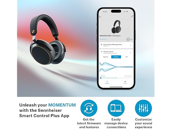 (NEW) Sennheiser Momentum 4 Wireless Headphones - Bluetooth Headset for Crystal-Clear Calls with Adaptive Noise Cancellation, 60h Battery Life, Lightweight Folding Design