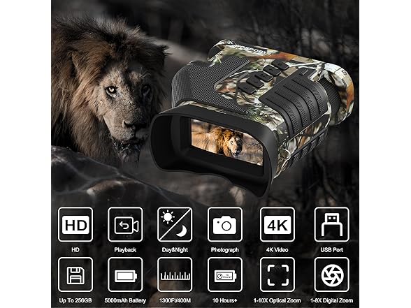 (NEW) WOSPORTS 4K Night Vision Goggles - 64GB TF Card, 10X Optical & 8X Digital Zoom, 1315FT Infrared Range, IPX Waterproof