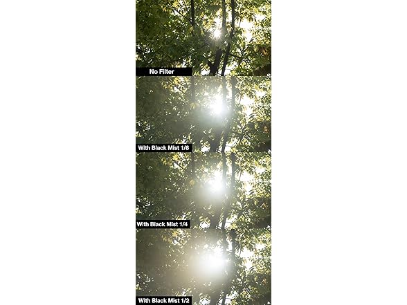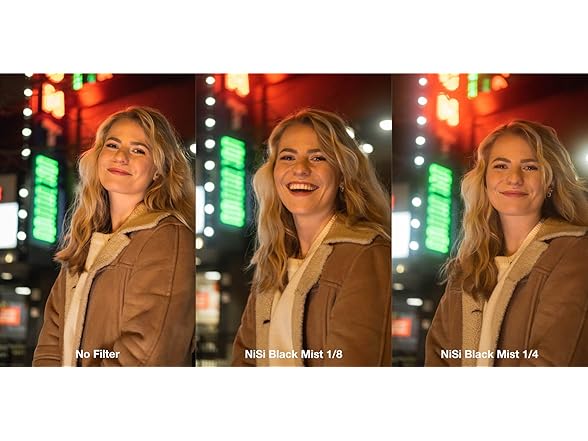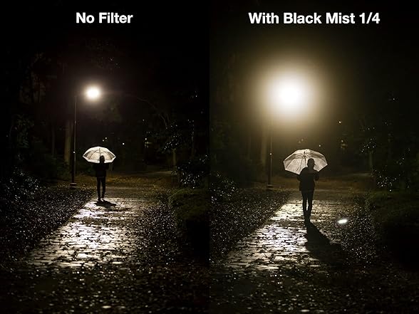 - DREAMLIKE CINEMATIC EFFECTS: Achieve soft, dreamlike visuals with the NiSi Black Mist 1/4 Filter that reduces contrast and creates a balanced, cinematic glow in your images and videos. This Nisi 77mm lens filter is designed for professionals looking to elevate their storytelling, this pro mist filter adds atmosphere and depth while maintaining clarity, making it ideal for artistic photography and videography.