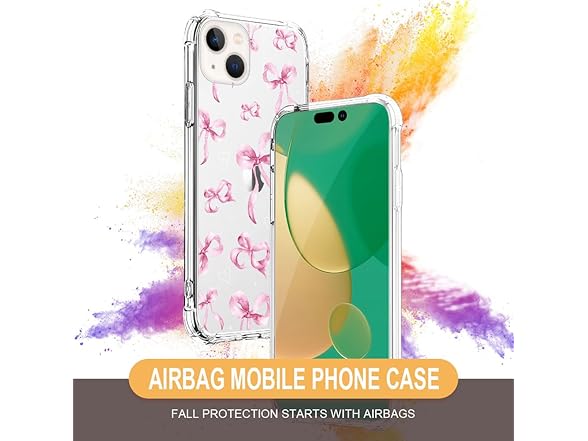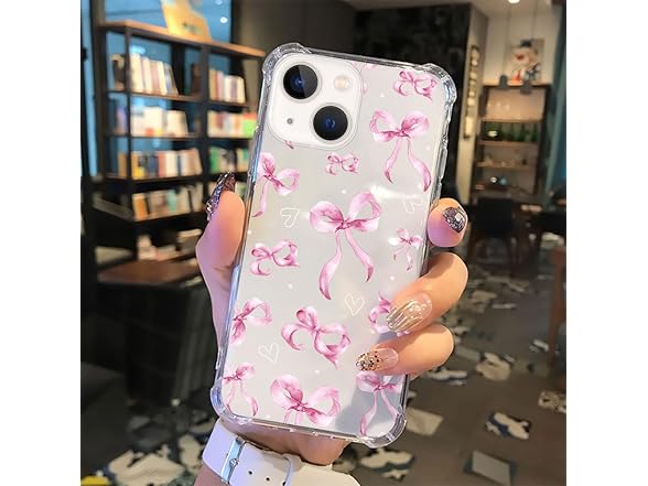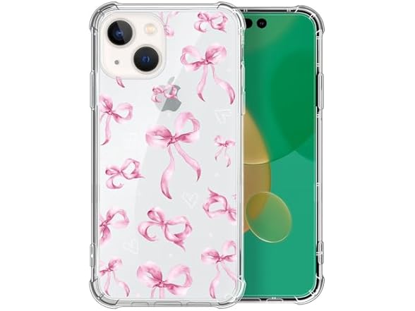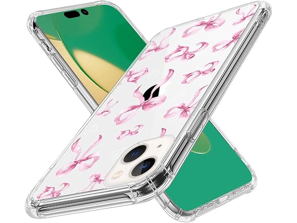 NONMY for iPhone 13 Mini Case Clear,TLT Pink Bow Transparent Soft Shockproof Protective Slim Thin Bumper Pattern Design Phone Case