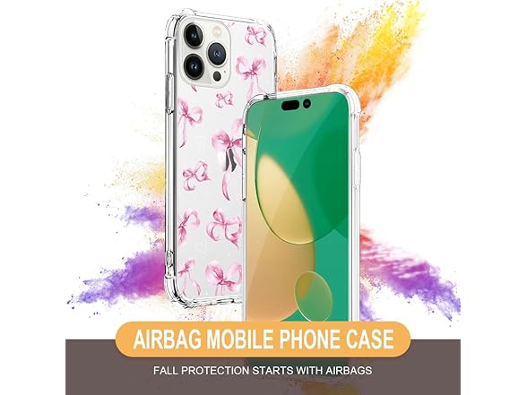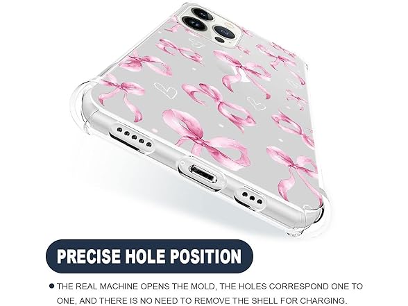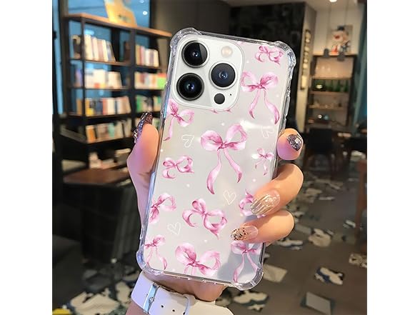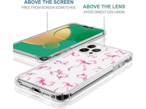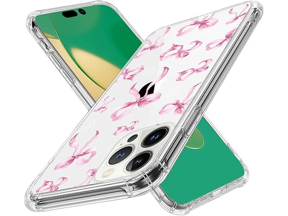 NONMY for iPhone 13 Pro Case Clear,TLT Pink Bow Transparent Soft Shockproof Protective Slim Thin Bumper Pattern Design Phone Case