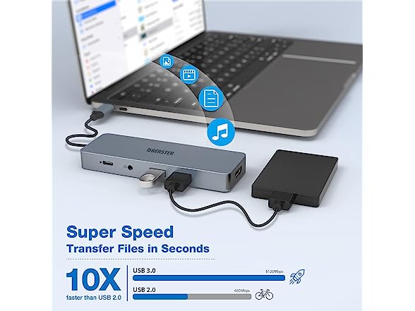 - Super Speed Data Transfer: USB 3.0 ports supports super speed data transfer up to 5 Gbit/s(full speed). The port is compatible with USB A 2.0 and lower. The RJ45 Gigabit Ethernet port provides faster internet access (up to 1 Gbit / s). The SD card and Micro SD card can be used with a fast transfer rate of up to 40 MB/s. You can transfer your photos or videos from a camera to a laptop in seconds.