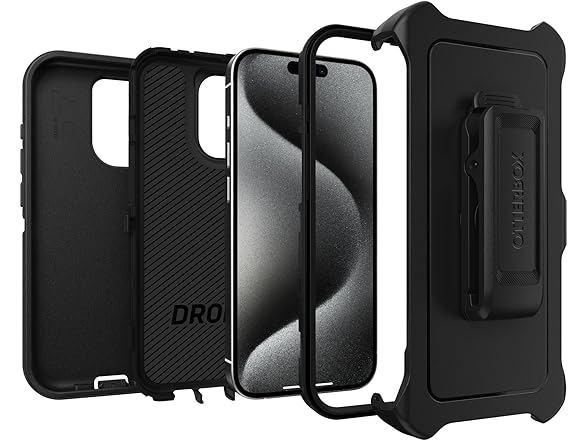 OtterBox iPhone 15 Pro Defender Series Case - screenless, Rugged & Durable, with Port Protection, Includes Holster Clip Kickstand