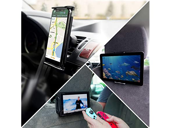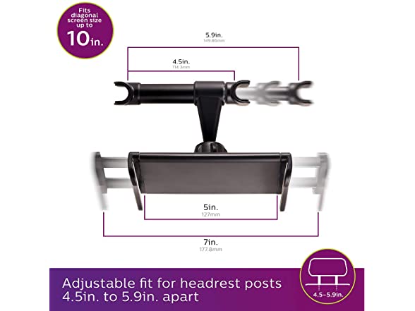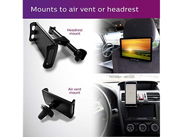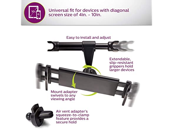 Philips Accessories Philips Car Headrest Tablet Mount + Air Vent Phone Holder, Adjustable for Tablets Smartphones and Other Portable Devices, iPhone, iPad, Samsung Galaxy, More
