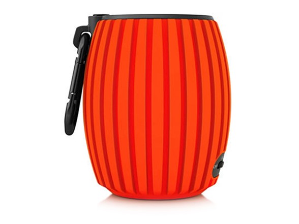 Powerful sound supported by wireless music streaming via Bluetooth, a rechargeable battery for playback anywhere and a built-in microphone for hands-free phone calls. And a carabiner too, to clip onto your belt or bag.