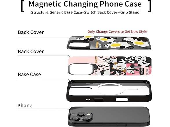 - Original Design:Ghyivktc 3-in-1 iPhone 16 Pro Max case set is designed with removable structural parts,replaceable back cover design are magnetic,let you change your DIY as you like The set includes Universal Back Cover +Interchangeable Back Covers (2*Pandas),allowing you to change your phone case as you like