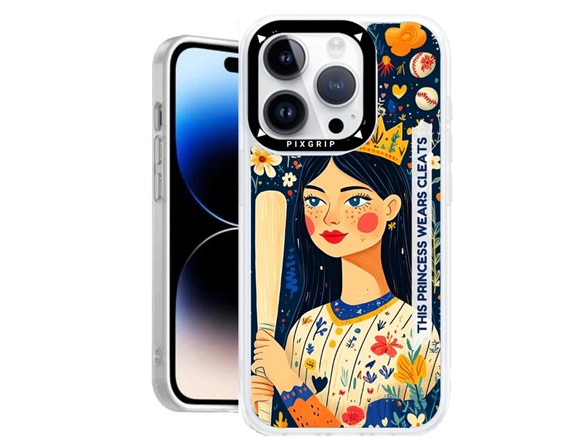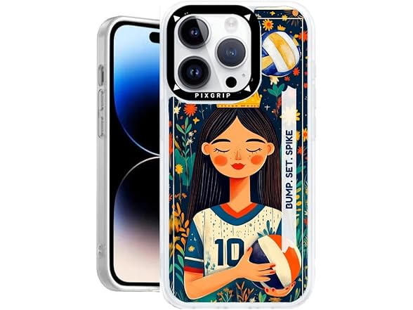 PixGrip Sports Phone Case for iPhone 16 Pro and Pro Max, Softball Volleyball Soccer Designs, Protective TPU Sides with Hard Back (Volleyball Princess, for iPhone 16 Pro)