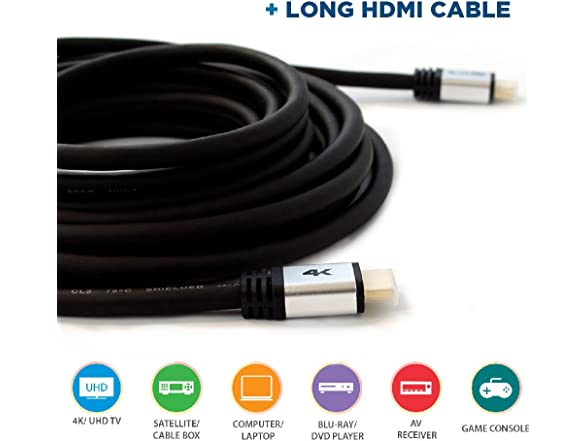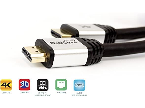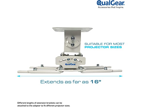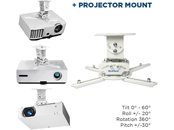 QualGear PRB-717-WHT-50ft Projector Ceiling Mount Bundle with HDMI Type A Male to Type A Male Cable, 50' Black