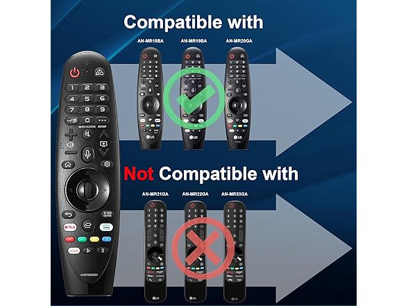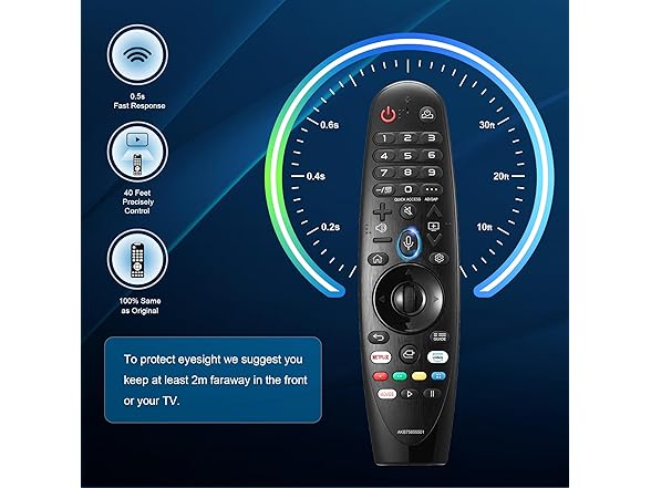 - đ„ăAccurate Control & Fast ResponseăNew upgraded smart chip, feature with over 40 feet farther transmitting distance, stable performance, magic remote for LG smart TVs supports faster transmission speeds. Fastest response not over 0.2 second to launch to your TV. This LG-smart-tv-remote control had also been successfully tested to click the buttons highly over 120,000 clicks. Easily replace missing or damaged remote, keep the same full control functionality of your original lg tv remote control.