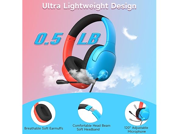 - Premium Lightweight Design: Crafted for extended gaming sessions, our gaming headset features deluxe comfort padding, an adjustable durable headband, noise-isolating ear cups, and breathable, soft foam cushions that envelop you in comfort. Weighing less than 8 oz, our gaming headphones are custom-designed for prolonged wear, ensuring no discomfort or complaints of ear fatigue even after hours of gaming