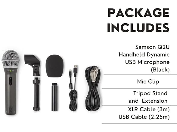 SAMSON Q2U USB/XLR Dynamic Microphone Recording and Podcasting Pack (Black)