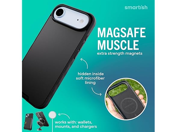 - π πππ¦πππ π π¨π¦πππ: Extra-strong magnets vibe with MagSafe charging and accessories, such as wallets, car mounts, and wall mounts. Hidden behind soft inner microfiber lining, it holds tight, even on bumpy roads or grab-and-go mornings.