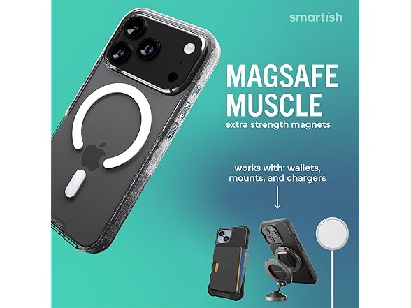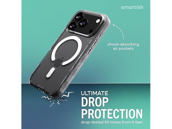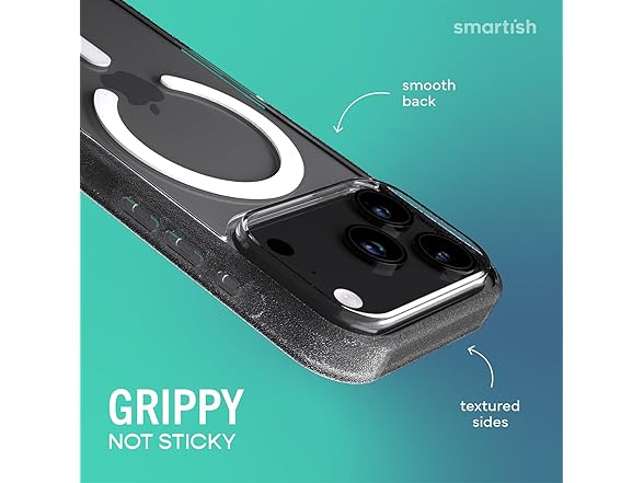 The clear case that actually stays clear. Gripmunk Clear by Smartish is a lightweight, protective iPhone 17 case designed for real life, with the perfect combo of MagSafe strength, long-lasting clarity, and everyday grip. Drop-tested 50 times from 6 feet, Gripmunk doesn’t flinch. Shock-absorbing air pocket corners cushion your phone during slips, fumbles, and those unexpected oops moments. It’s slim enough to slide into your jeans or bag, but tough enough to take a beating. Built with extra-strength magnets under the surface, this case locks tightly onto MagSafe chargers, wallets, and car mounts. Whether you're heading out the door or hopping into the car, Gripmunk stays put through every bump and turn. The anti-yellowing material resists discoloration from sunlight, sweat, and everyday grime. Your phone stays clean, crisp, and crystal clear day after day. No weird tint, no crusty fade, just a sharp look that lasts. Gripmunk also features textured sides and finger grooves, giving you a secure grip without pocket snags or awkward slips. It’s comfortable in hand and ready for snappy selfies, scrolling, and all-day use. Raised edges around the screen and camera create a safety buffer, helping you avoid scratches whether it’s face-down on a table or sliding across a counter. If you're looking for a case that protects without hiding your phone, Gripmunk Clear is it. It’s sleek, dependable, and made to keep your iPhone looking fresh and feeling safe, wherever your day takes you.