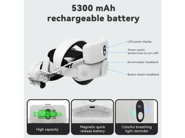 Lightweight and Convenient Design: The Quest 3 battery strap is only 1.4lb, the burden on the head and face are significantly reduced. And the 5300mAh battery pack adopts magnetic quick-release design and can be detached and charged easily.