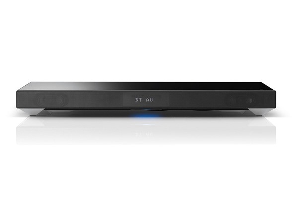 Enhance your TV experience with this elegant, easy to use 170 watt 2.1 channel integrated surround sound system. Simply connect your TV and HD devices with HDMI or stream music wirelessly via Bluetooth and NFC. The elevated chassis design features dual, down-firing subwoofers for solid bass response while even supporting TVs up to 66 lbs.