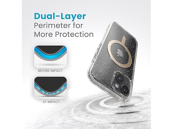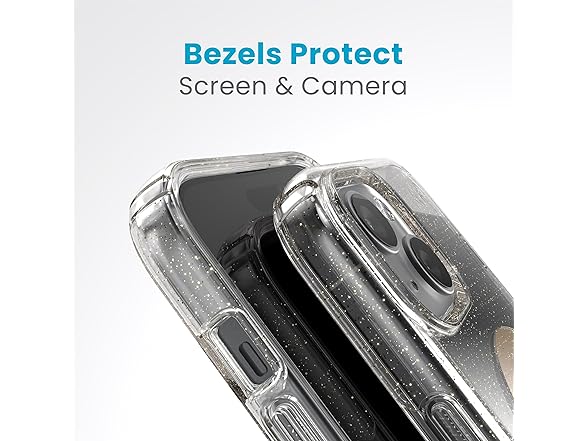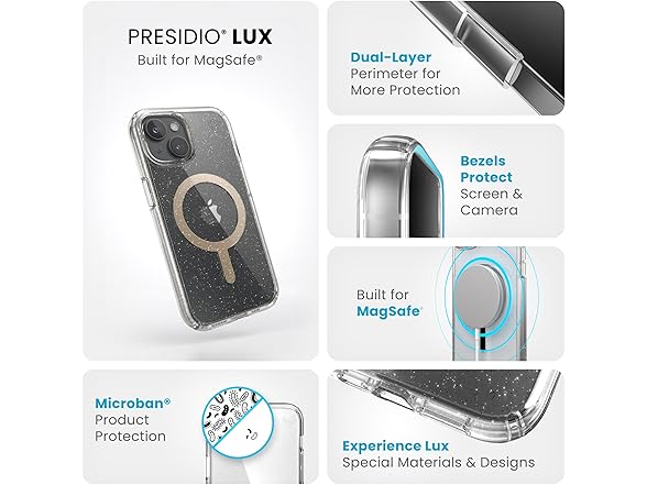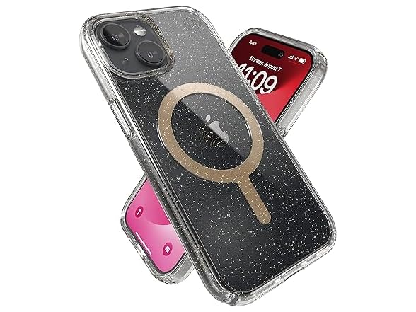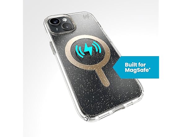 Speck Clear iPhone 15 Case MagSafe - iPhone 16e Case - Slim Phone Case iPhone 15-6.1 inch - Compatible with iPhone 14 and 13 Case MagSafe - Presidio Lux Clear/Gold Glitter/Beige