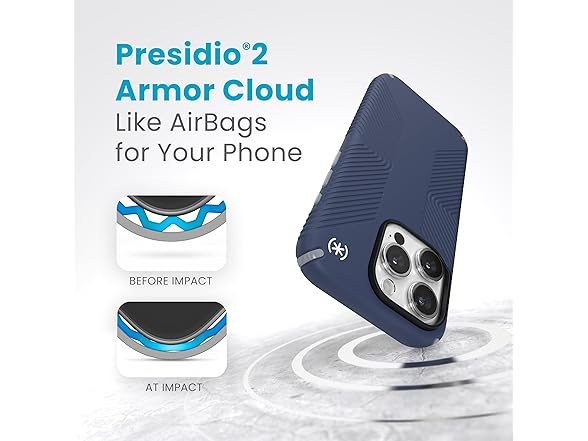 - 13FT DROP PROTECTION - Created with life in mind, our Speck Presidio2 phone case features Armor Cloud Technology that cushions your phone like an airbag upon impact to absorb shock and resist damage to your device, plus a raised bezel to protect your screen from scratching and shattering if your phone falls face-down.