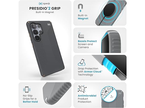 Speck Samsung Galaxy S25 Ultra Case - Magnet Case, 13-Foot Drop Protection, No-Slip Grips - Samsung S25 Ultra Case Magsafe - Raised Bezel and Enhanced Buttons - Presidio 2 Grip