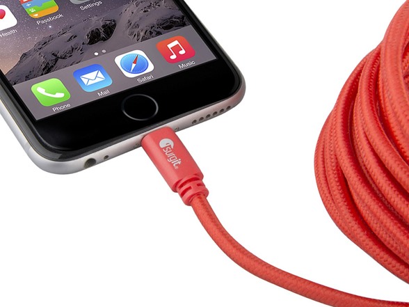 The Surgit 13' Lightning Charge and Sync Cable is Apple certified and uses the original connector from Apple. The Surgit 13' Lightning Charge and Sync Cable is the longest MFI cable on the market. This cable supports charge and sync of the iPhone 5, iPhone 5s, iPhone 5c, iPhone 6, iPhone 6 Plus, iPad 4, iPad Mini, iPod Touch 5, iPod Nano 7, iPhone 7, and iPhone 7 Plus. This Surgit 13' Lightning Charge and Sync Cable features a slim lightning connector design that allow it to be used with devices without removing case. If you want to charge or sync your device quickly and easily, the Surgit 13' Lightning Charge and Sync Cable is perfect for you!