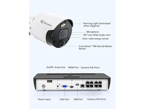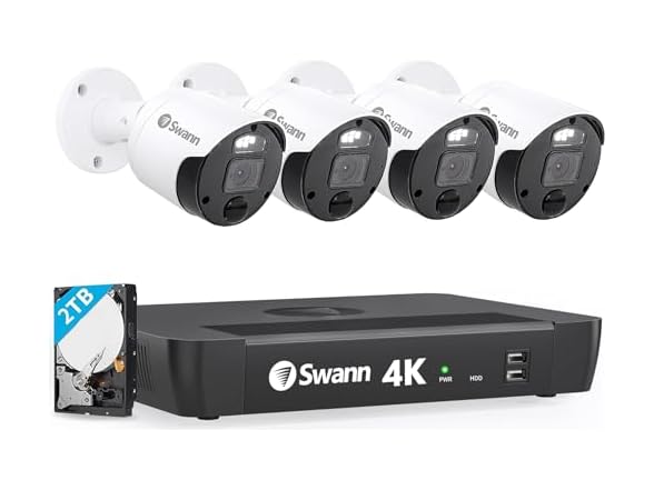 SWANN Master 4K 8 Channel Home Security Camera System, 2TB NVR, 4 PoE IP Cameras Outdoor, 8MP Wired Surveillance CCTV, Heat Motion Vehicle Detection, LED Light, 24/7 Recording Security Camera, 876804