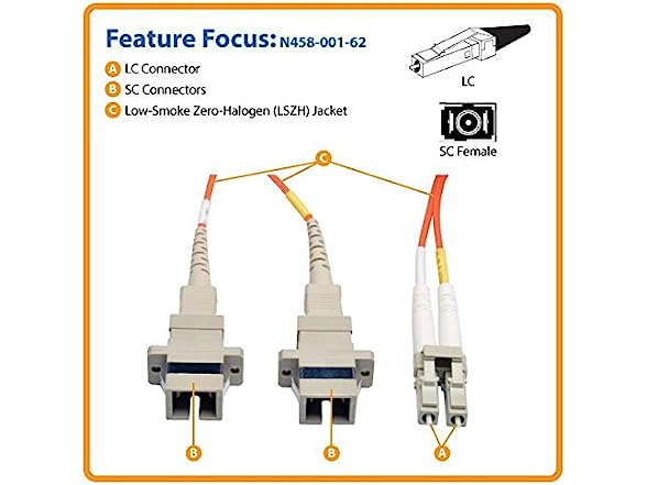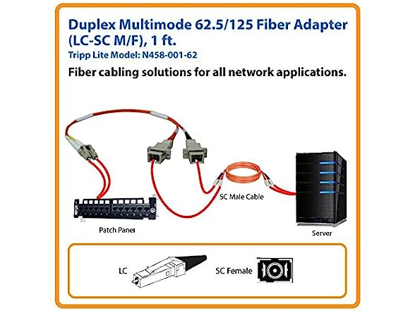 Tripp Lite Duplex Multimode 62.5/125 Fiber Adapter (LC-SC M/F) 0.3M (1-ft.)(N458-001-62)
