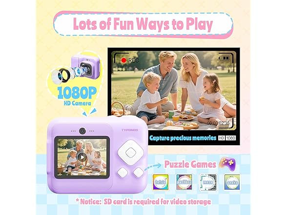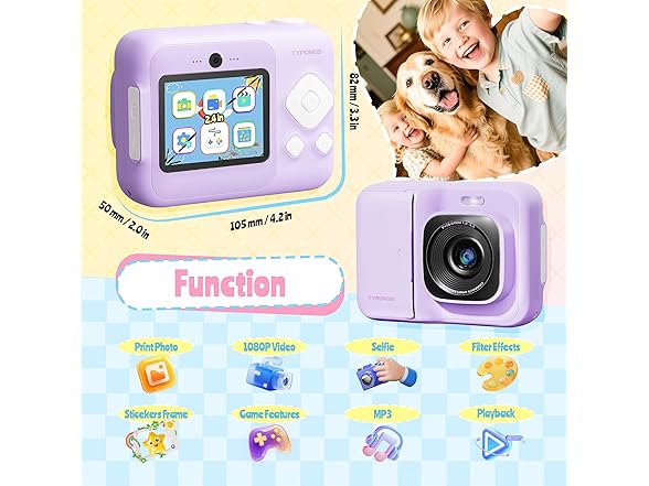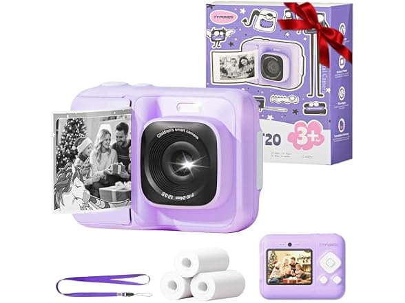 - Safe, Portable & Kid-Friendly Instant Print Camera: This instant print camera for kids has a shockproof design and includes a lightweight lanyard. It uses safe, BPA-free thermal paper, so parents can relax. Compact and easy to carry, this kid camera is great for trips and outings. As a kids instant print camera, it lets children capture and print memories anywhere. A fun and safe gift, this kids camera instant print helps kids treasure their favorite moments!