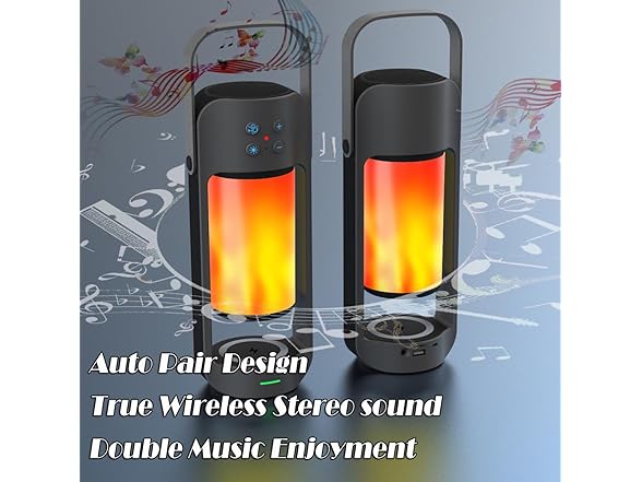 - 👍Versatile Flame Lamps and Lights:Our Bluetooth speaker features a control panel with a light bulb button that lets you switch between three different modes - flame light, regular light, and off. The flame light mode mimics a flickering candle ambiance, while the standard light mode provides ample illumination. Use this feature to create the perfect atmosphere for any mood or setting. Whether you're hosting an intimate gathering or unwinding a'er a long day, it have got you covered.