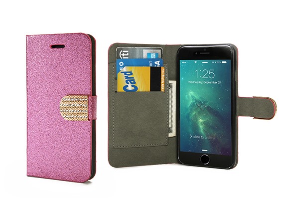 The Urges Basics iPhone 6 Glitter Wallet Case compliments the original design of the device while adding a layer of protection. The strong case provides protection from light drops and falls. This case includes wallet pockets for ID, cards and cash.