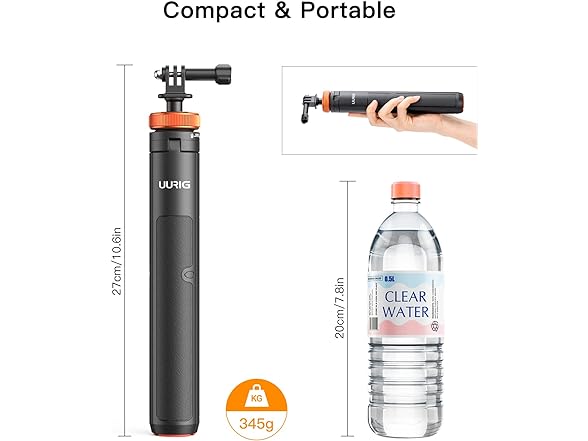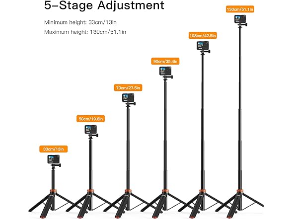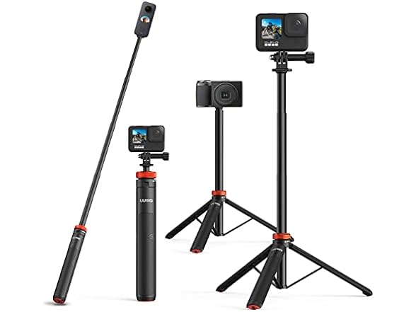 UURig Extendable Selfie Stick Tripod for GoPro Max Hero 10 9 8 7 6 5 4, DJI Osmo Action, Insta 360 One R and More Action Camera(50.7'')
