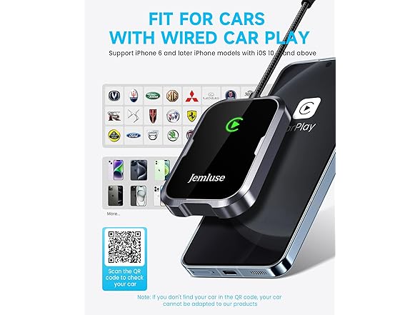 - [Wide Compatibility, Seamless Integration] Our apple car adapter is compatible with iPhone 6+/ iOS 10+, ensuring seamless integration with your smartphone. In addition, it supports more than 800 car models, only for car with wired carplay. No more worrying about compatibility, just pure wireless driving pleasure.