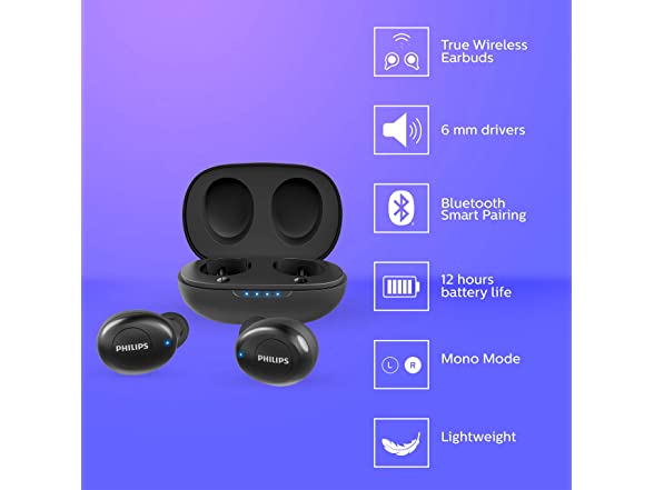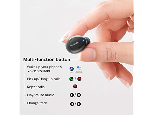 Philips Audio UpBeat UT102 True Wireless in-Ear Earbuds Bluetooth 5.0 Headphone, TWS Stereo with 3+9 Hours Playtime, Multifunction Button + Smart Pairing